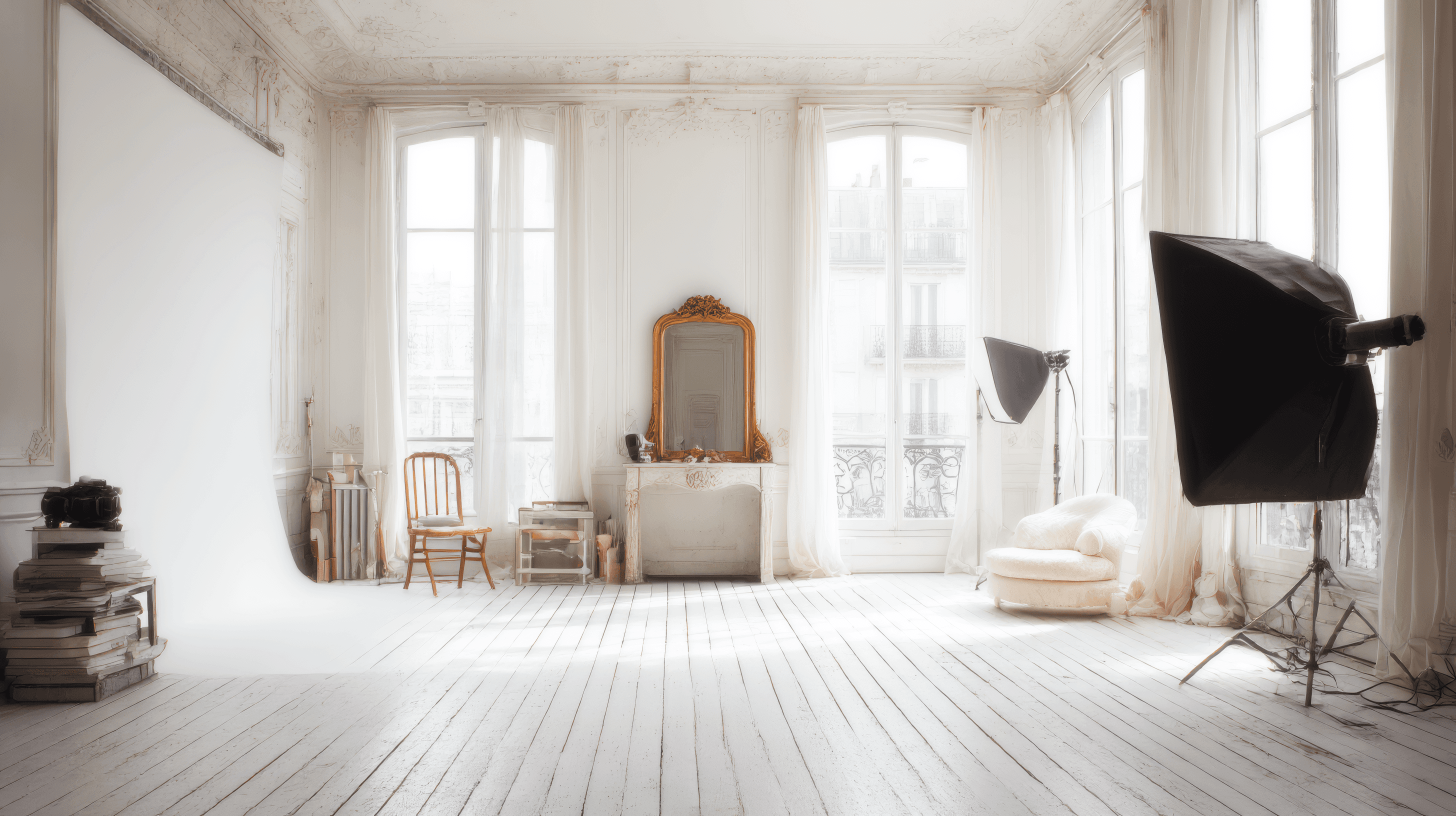 Select shoots still happen here — in our natural-light Paris studio.